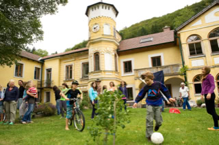 Heute leben hier etwa 30 Erwachsene, Jugendliche und Kinder... und mindestens genauso viele Tiere.